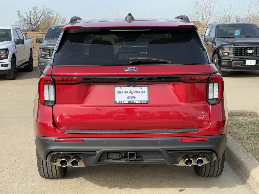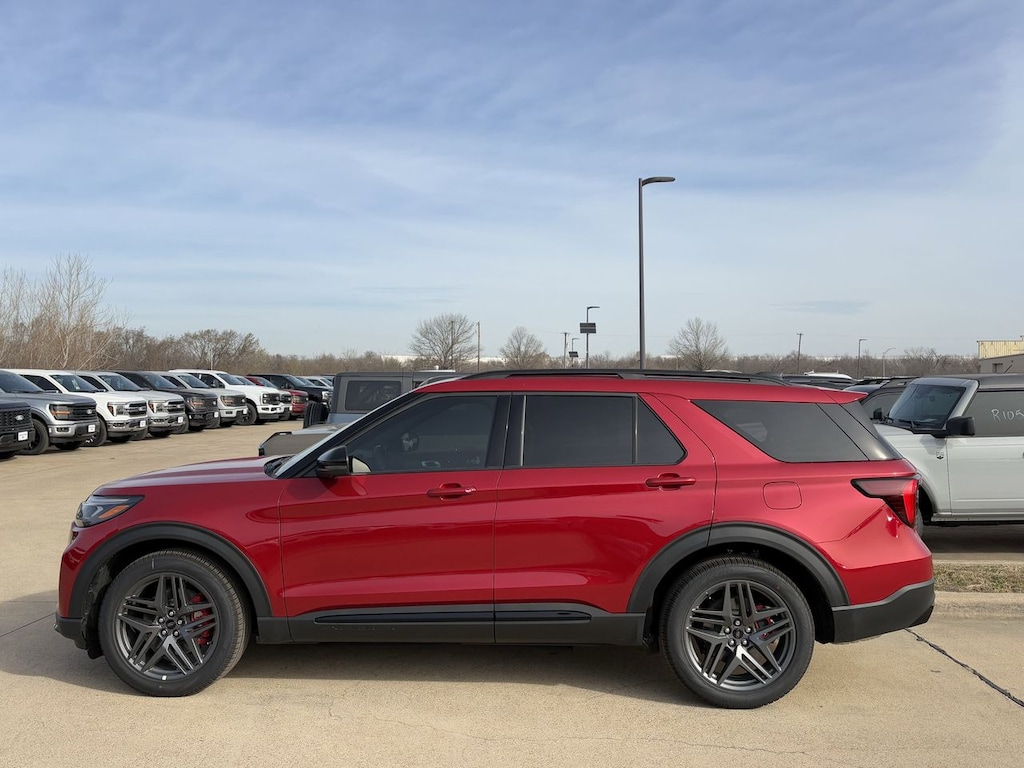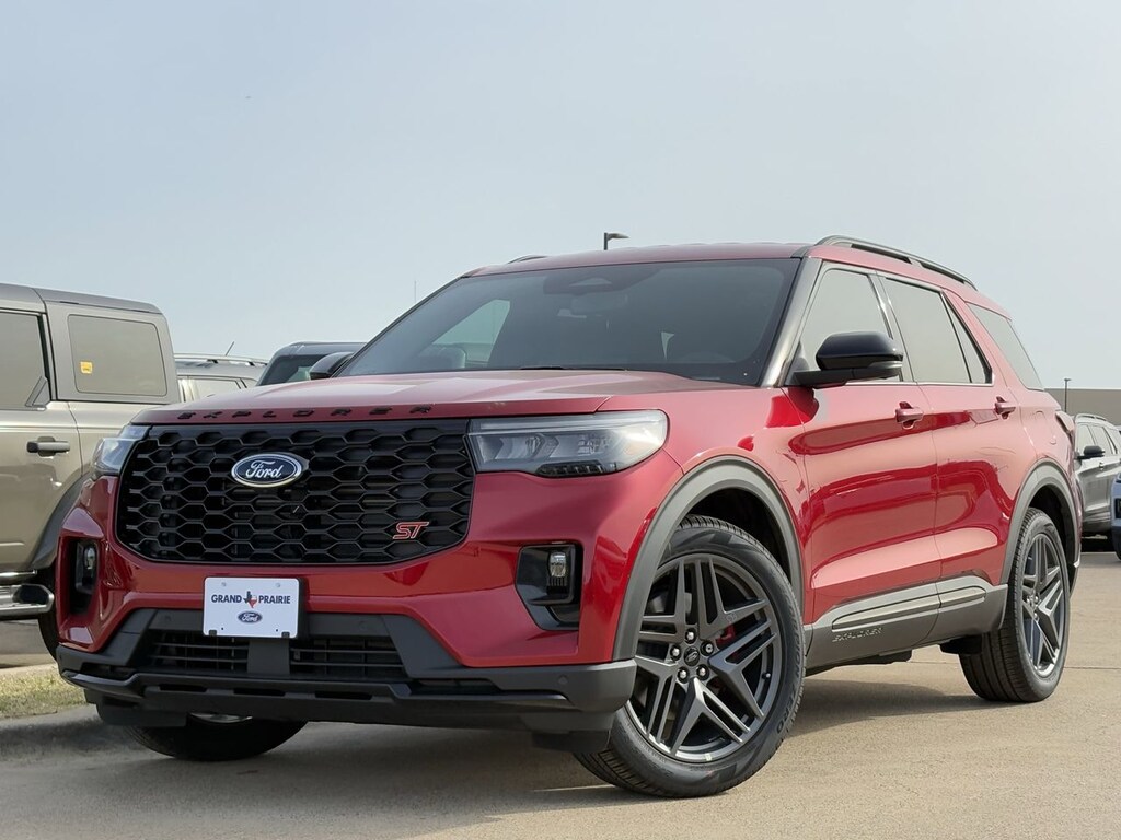 Step into the future of driving with the 2026 Ford Explorer ST, where power meets precision. This new model, dressed in Rapid Red Metallic Tinted Clearcoat, boasts a 3.0L EcoBoost V6 engine that delivers exhilarating performance with turbocharged efficiency. Designed for those who crave adventure, its four-wheel drive and 10-speed automatic transmission ensure you conquer any terrain with confidence. Safety is paramount, featuring advanced systems like Blind Spot Monitor, Lane Keeping Assist, and Rear Collision Mitigation to keep you and your passengers secure. Experience superior comfort with heated and cooled front seats, a heated steering wheel, and a third-row seat for versatile space. The Explorer ST's adaptive cruise control and aerial view display system enhance every drive, while the premium sound system and WiFi hotspot keep you connected and entertained. With a power liftgate and remote engine start, convenience is at your fingertips. This Explorer is more than a vehicle; it's a statement of style and substance for those who refuse to settle for the ordinary.