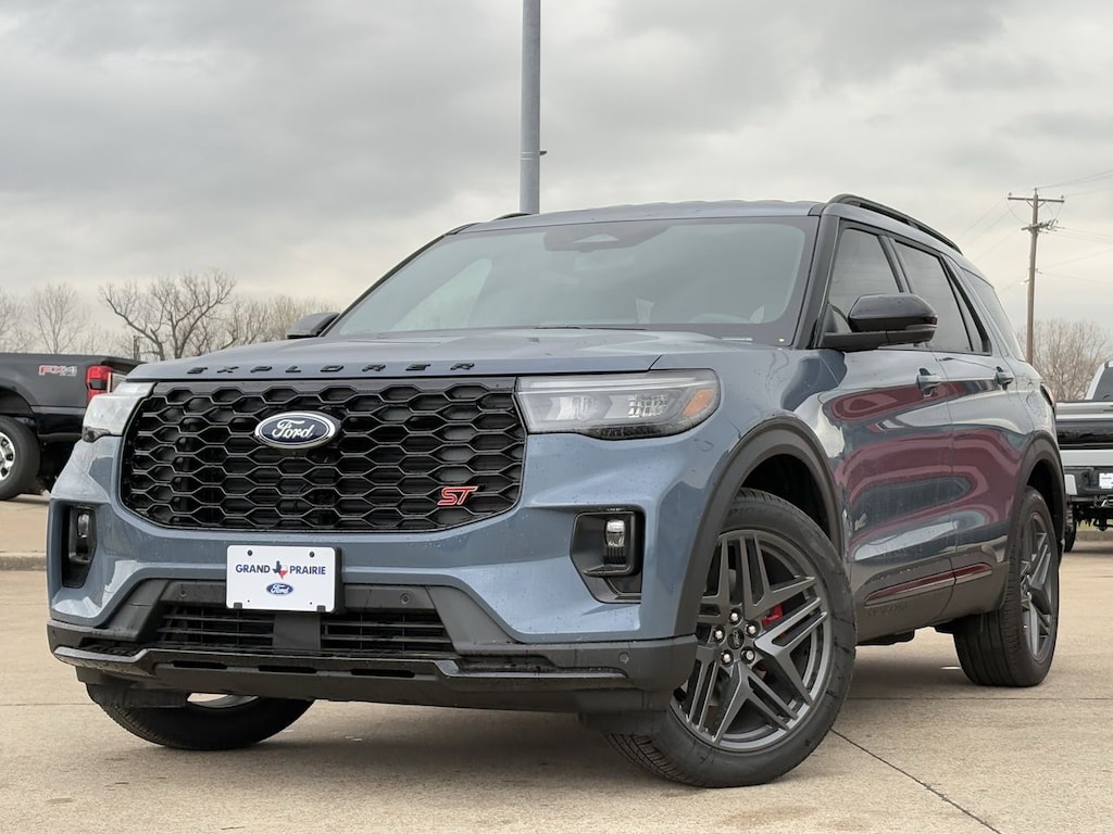 The Explorer ST's exterior, finished in the eye-catching Vapor Blue Metallic, ensures you'll stand out in any crowd. Inside, the cabin is crafted for comfort and control, offering an intuitive driving experience with advanced technology at your fingertips. Whether you're navigating city streets or exploring the open road, the Explorer ST's dynamic handling and responsive steering provide confidence in every turn.